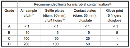Recommended limits for microbiological monitoring of clean areas during operation: